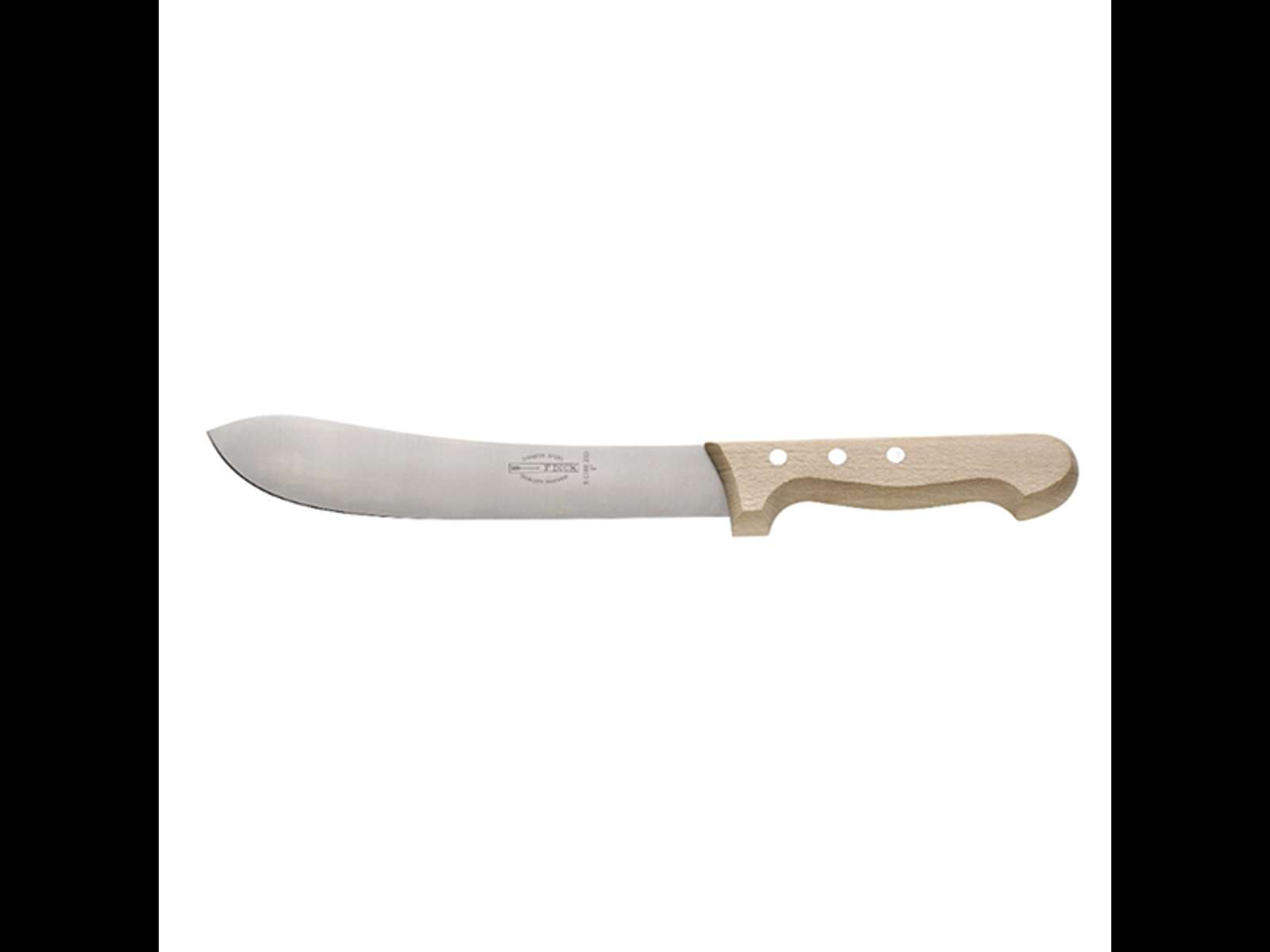 Este cuchillo de corte F. Dick tiene una longitud total de 398 mm con una longitud de hoja de 250 mm. La hoja tiene un ancho de 52 mm y una altura de 19 mm. Pesa solo 180 gramos, lo que proporciona un buen equilibrio entre resistencia y maniobrabilidad. La combinación de la hoja de acero al carbono y el mango de madera garantiza durabilidad y comodidad durante su uso.